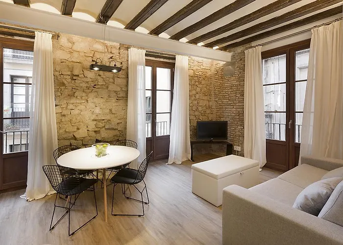 Apartaments Ciutat Vella offers modern accommodations located just off Las Ramblas in the historical Gothic Quarter. Combining traditional stone walls with contemporary design, these apartments provide a unique atmosphere for guests. The apartments feature modern kitchens and comfortable living areas. Surrounded by shops, boutiques, and local cafes, guests can easily immerse themselves in the Barcelona lifestyle. The nearby Liceu Metro Station offers convenient transport links for explorations throughout the city.